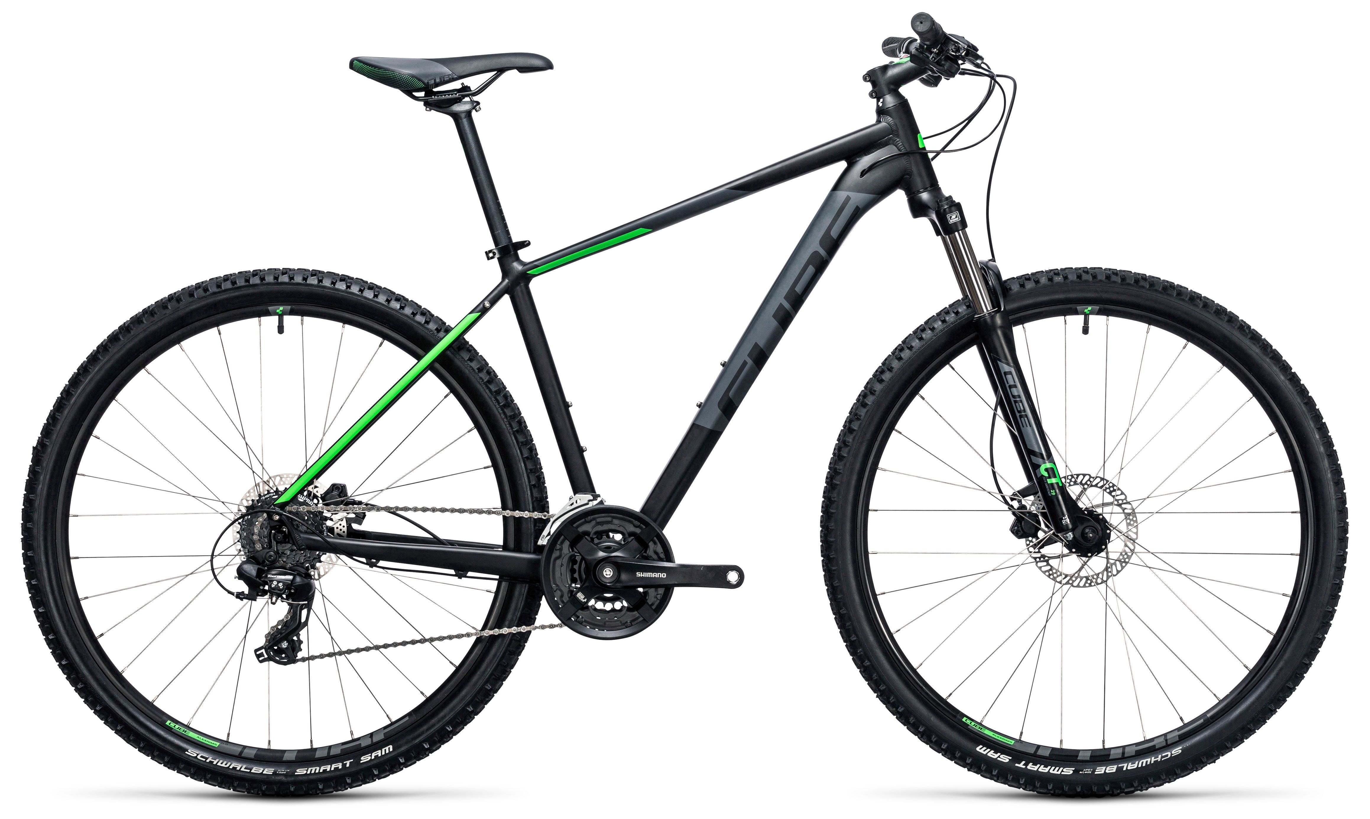 Найнеры можно назвать универсальным типом байков, так как в огромной коллекции найдутся подходящие варианты и для простых любителей велопрогулок, и для профессионалов. Велосипед Cube AIM PRO 29 (2017) — образец идеального сочетания хороших скоростных характеристик и максимального комфорта. Выпущен в 2017 году. Колеса 29" дюймов отлично переносят высокие нагрузки. Дисковые гидравлические тормоза хорошо слушаются, что гарантирует успешное выполнение любых маневров. Модель не боится сложных трасс и бездорожья.